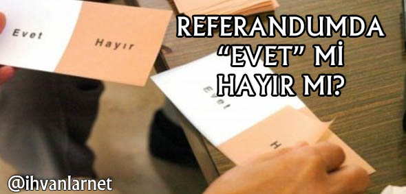 Bu oylamada evet demiyorsanız bile “hayır” dememenizi, çekimser kalmanızı tavsiye ederiz. Çünkü bu oylamada en tehlikeli şey tarafını yanlış belirlemek olacaktır. Şu soruya vicdanınızda mutlaka cevap vermelisiniz, bu değişikliği beğenmediyseniz bile “hayır” dediğiniz takdirde kimlerin safında olacaksınız?