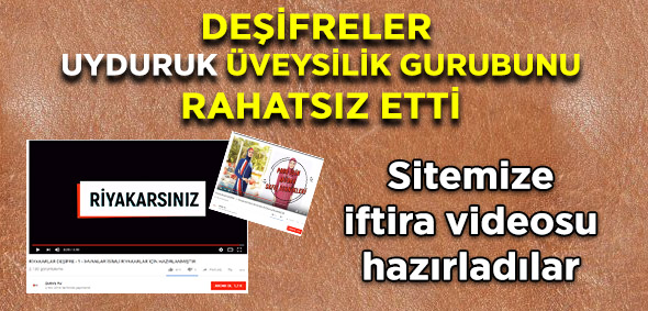 Bunu hazmedemeyen sahte üveysiler sitemizi karalamak için iftira yolunu seçtiler. Hazırladıkları video ile sitemizi “ihvanlar gurubu” olarak hedef alan sahtekarlar, İhvan adıyla satış yapan ve kadın mankeni resmi kullanan bir siteyi bize ait gösterip iftira attı. Bizim satış yaptığımız ve kadın mankenleri para için kullandığımız yalanıyla sitemize çamur atma yoluna gitti.